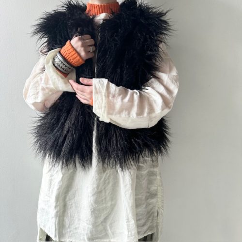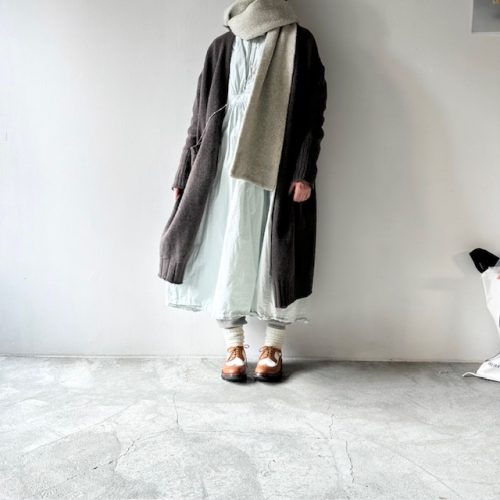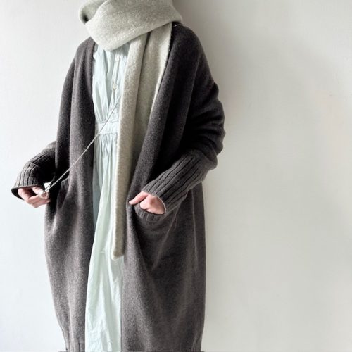 ロング丈のニットは足元まで