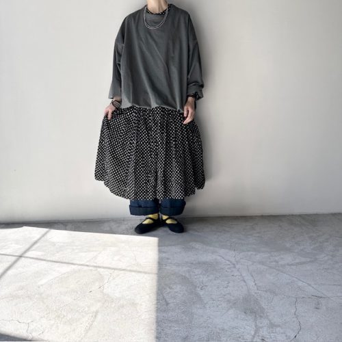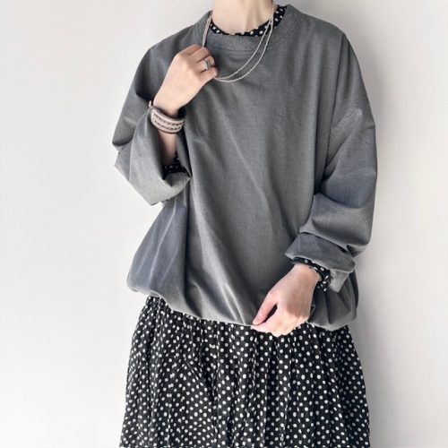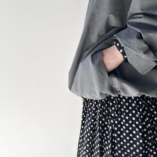 dot柄の one-piece に pullover を