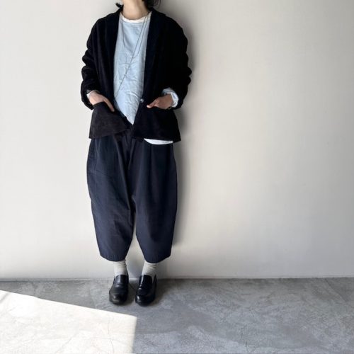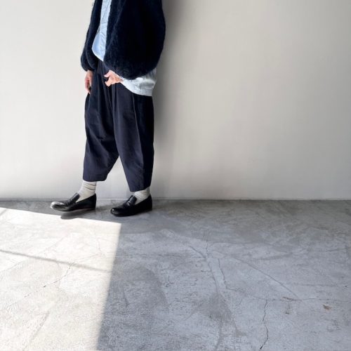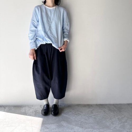 ゆったりしたシルエットのサルエルパンツに