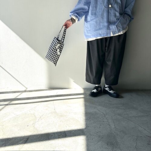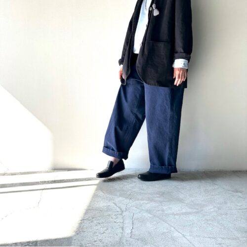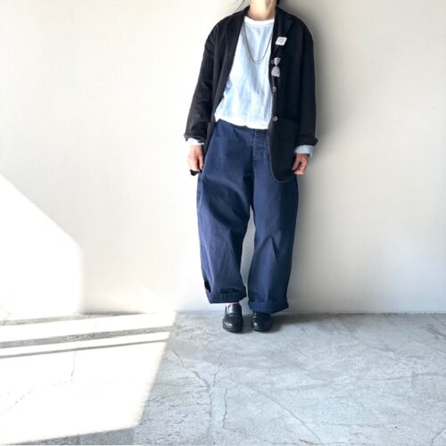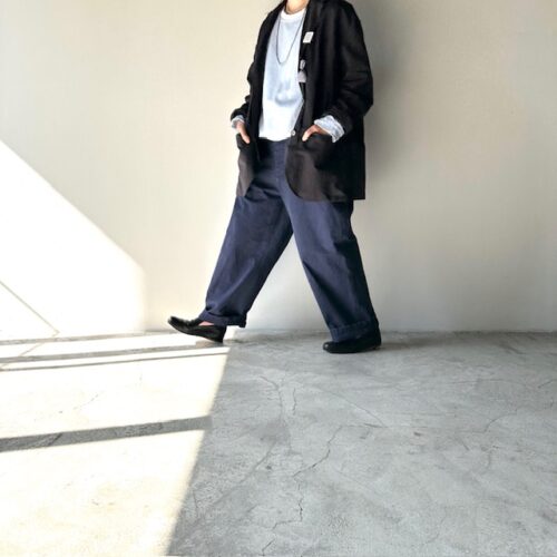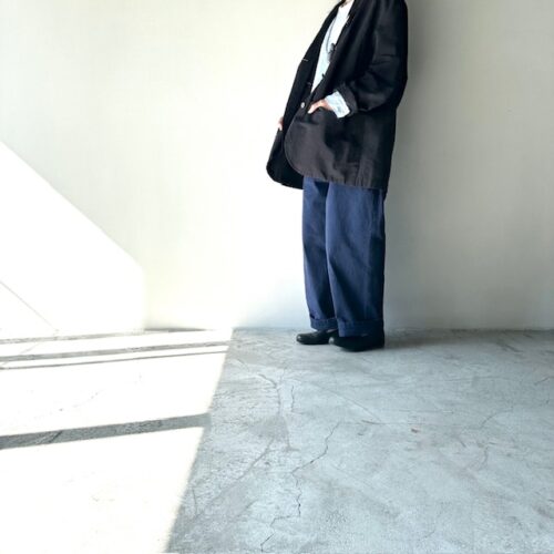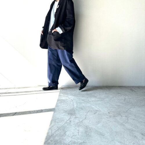 太めのパンツにジャケットで
