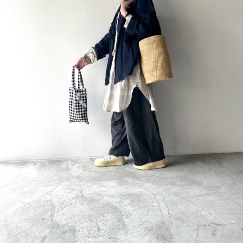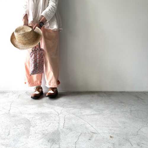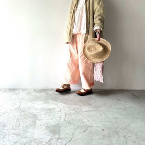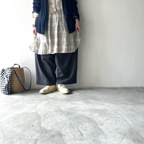 ストンとしたシルエットのパンツは