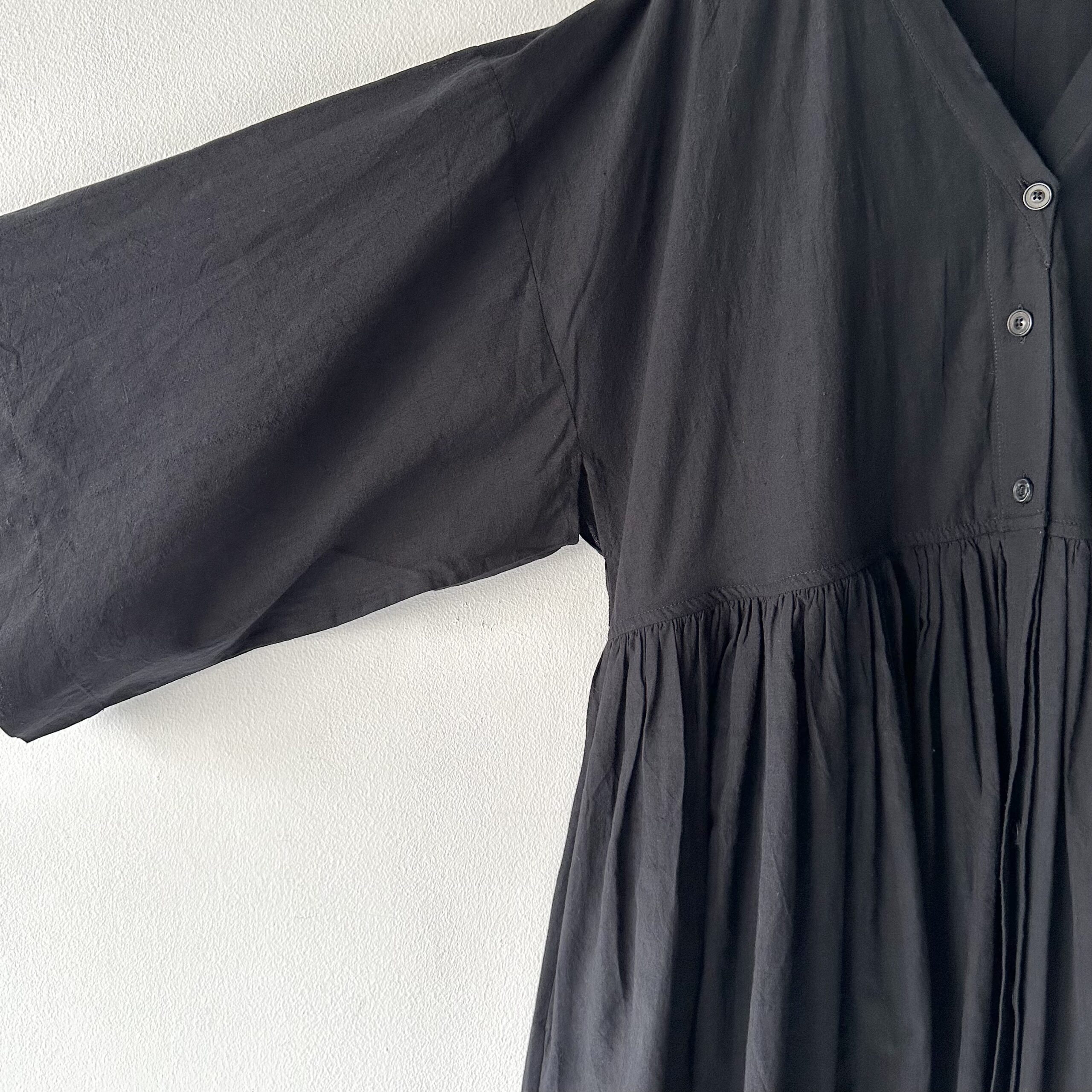 Price: ¥ 121,000(Taxin) Color: BLACK Quality: cotton 100% Size: 着丈:126cm 身幅:50cm 肩幅:60cm AH:56cm