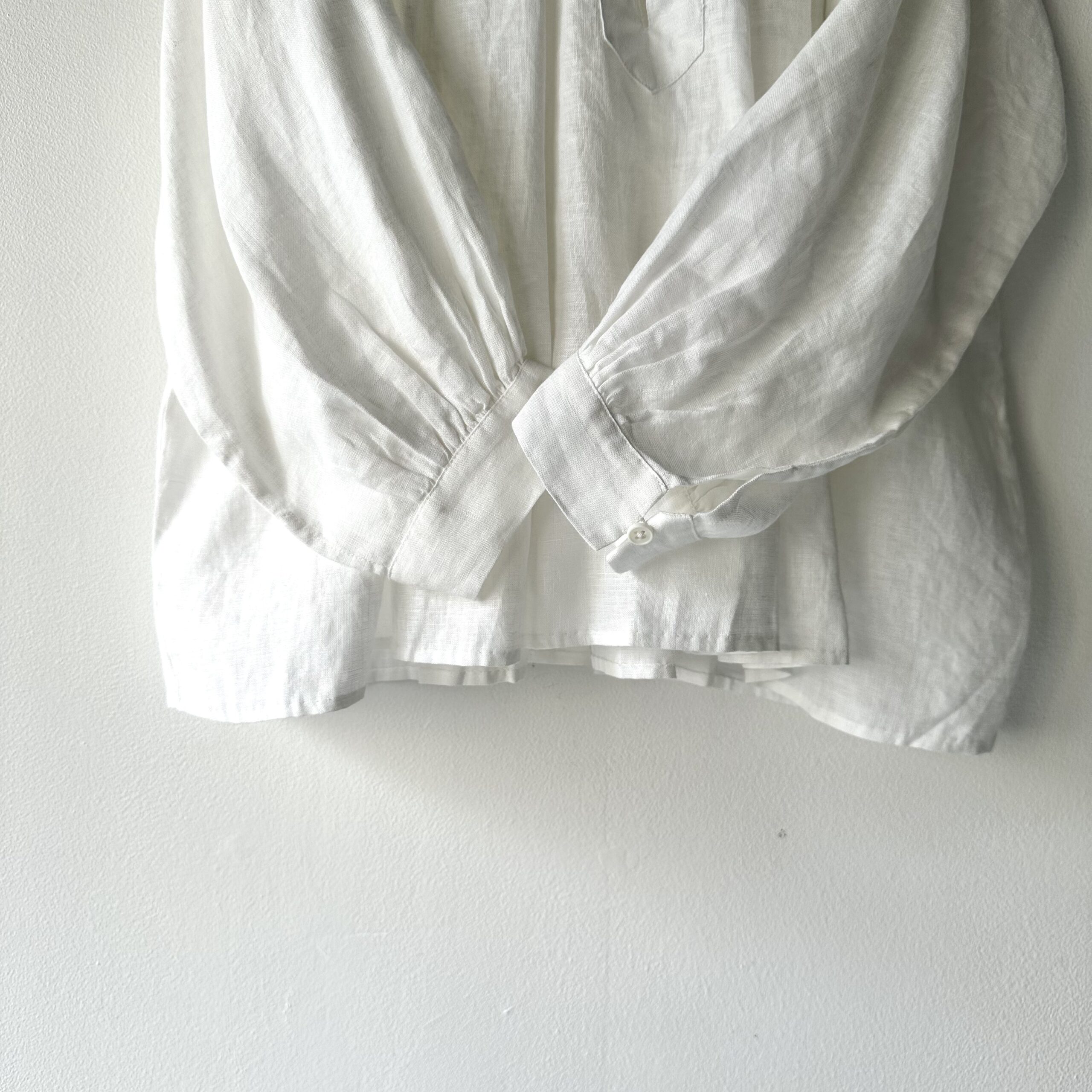 Item no: CADIZ 3 – WHITE Price: ¥95,700(Taxin) Color: WHITE Quality: linen 100% Size: 着丈:64cm 身幅:80cm 肩幅:48cm AH:50cm
