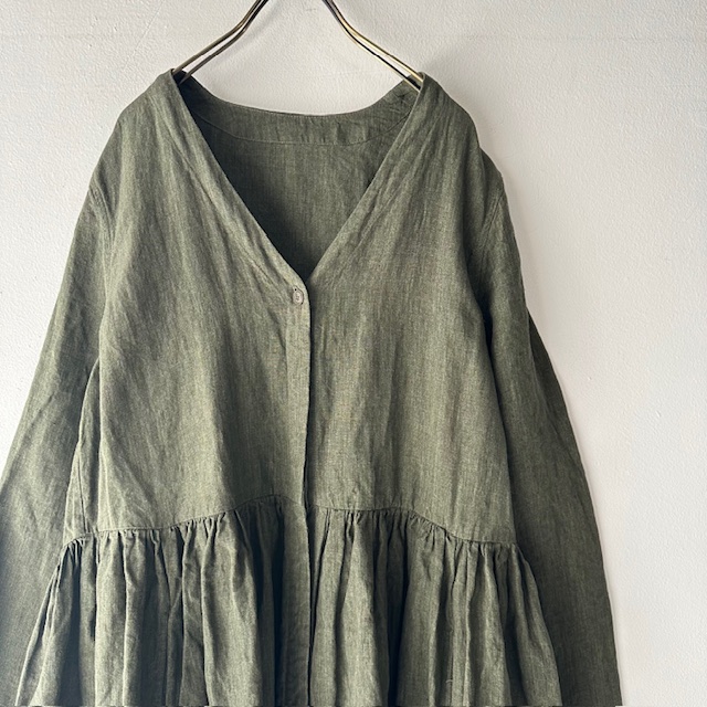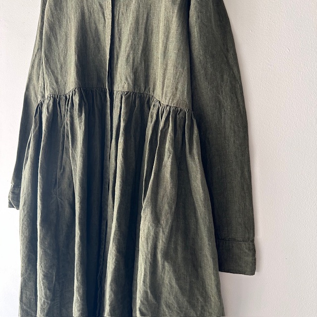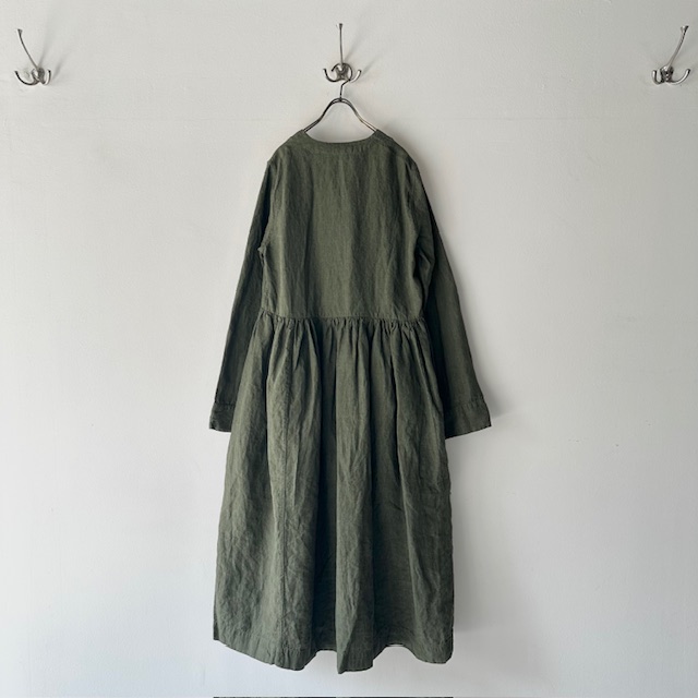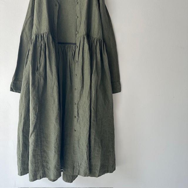 Item no: EVE DRESS – LIN TOILE Price: ¥297,000(Taxin) Color: KHAKI Quality: linen 100% Size: 1 着丈:130cm 身幅:51cm 肩幅:39cm